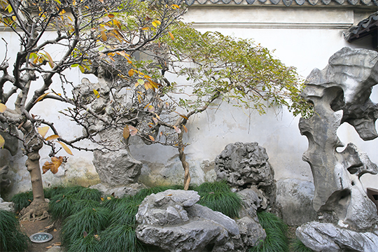 With a rock standing and a stream lying; a cave passed through and a crooked bridge stood; and dotted with a few mosses and colored with a few Chinese wistarias, this northern garden was full of southern aura, which rendered it rather agreeable.